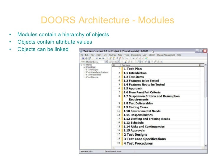 There is also a web client DOORS Web Access. Dynamic Object Oriented Requirements System DOORS Requirements and Verification Manager Formal Job Classification.