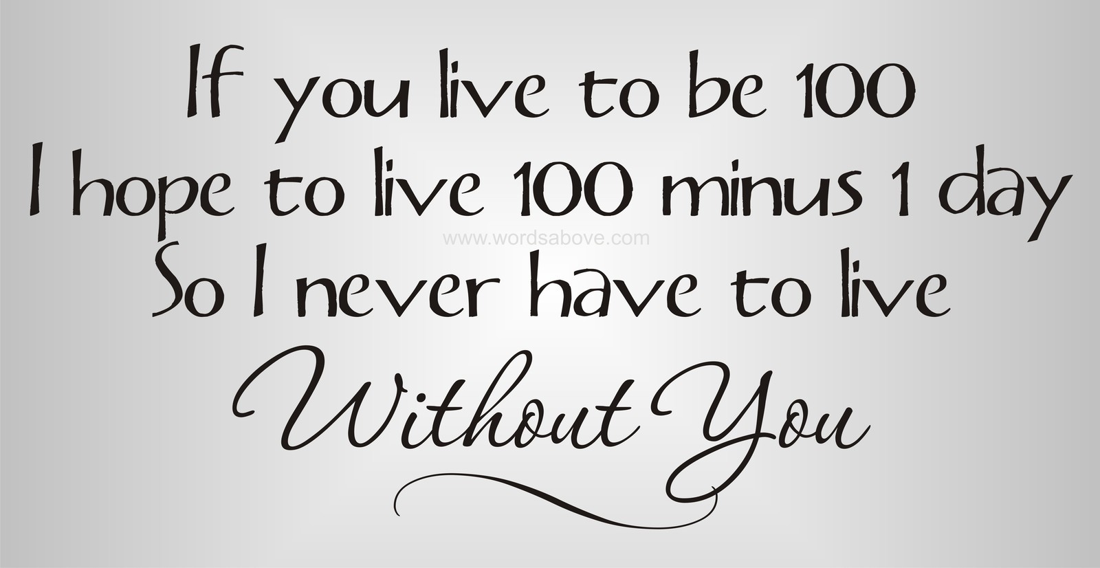 Cute quotes Life quotes Love quotes Friendship quotes Living quotes. If you live to be a hundred I want to live to be a hundred minus one day so I never have to live without you A. If you live to be 100 I hope I live to be 100 minus 1 day so I never have to live without you.